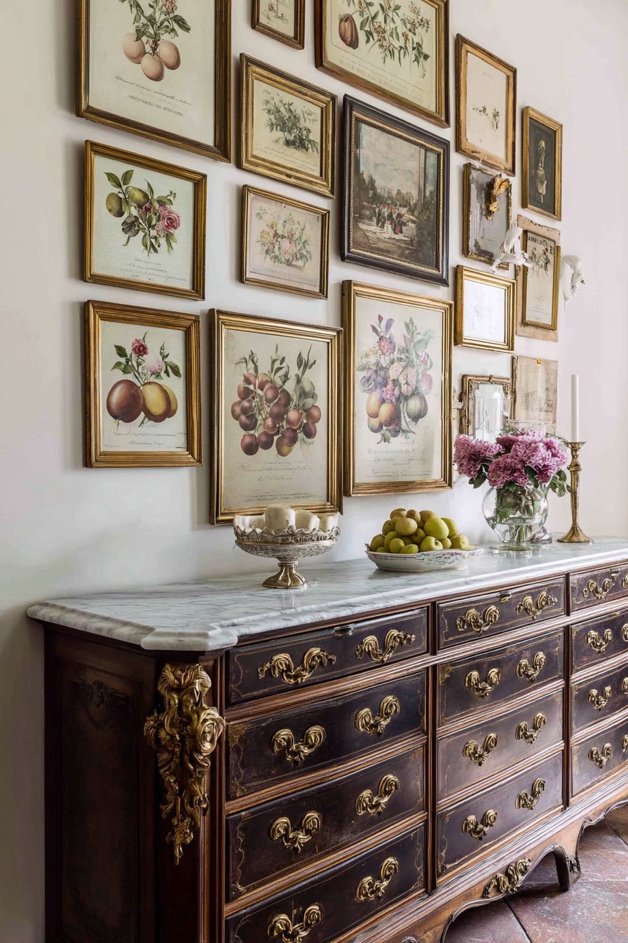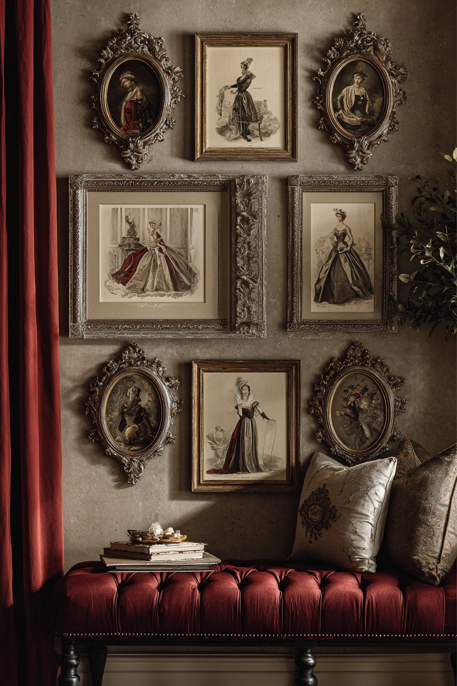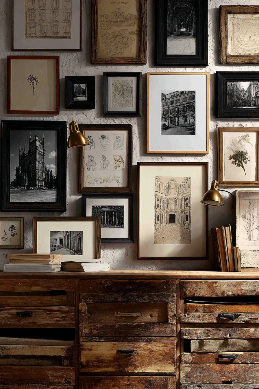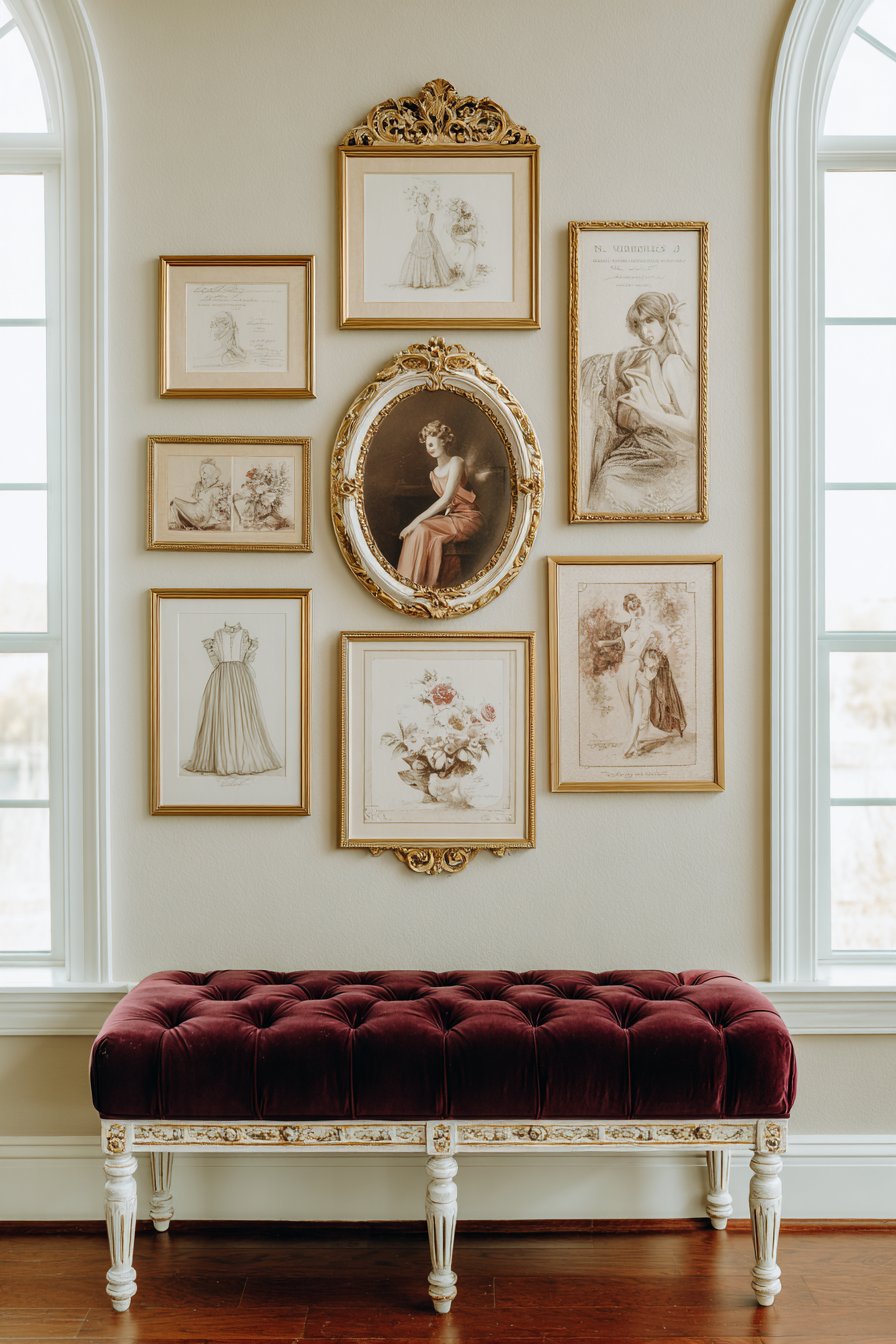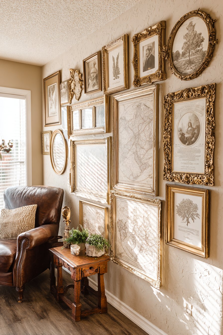 These gallery wall ideas excel at creating focal points that tell stories and invite conversation. Unlike mass-produced wall art purchased from big-box retailers, vintage gallery walls composed of authentic antique frames and period imagery provide genuine talking points for guests. Each piece has its own history—where it was found, what it depicts, how it’s survived decades or centuries—creating narrative depth that enriches your home environment. This storytelling aspect transforms wall decoration from passive background element into active contributor to your home’s personality and character.