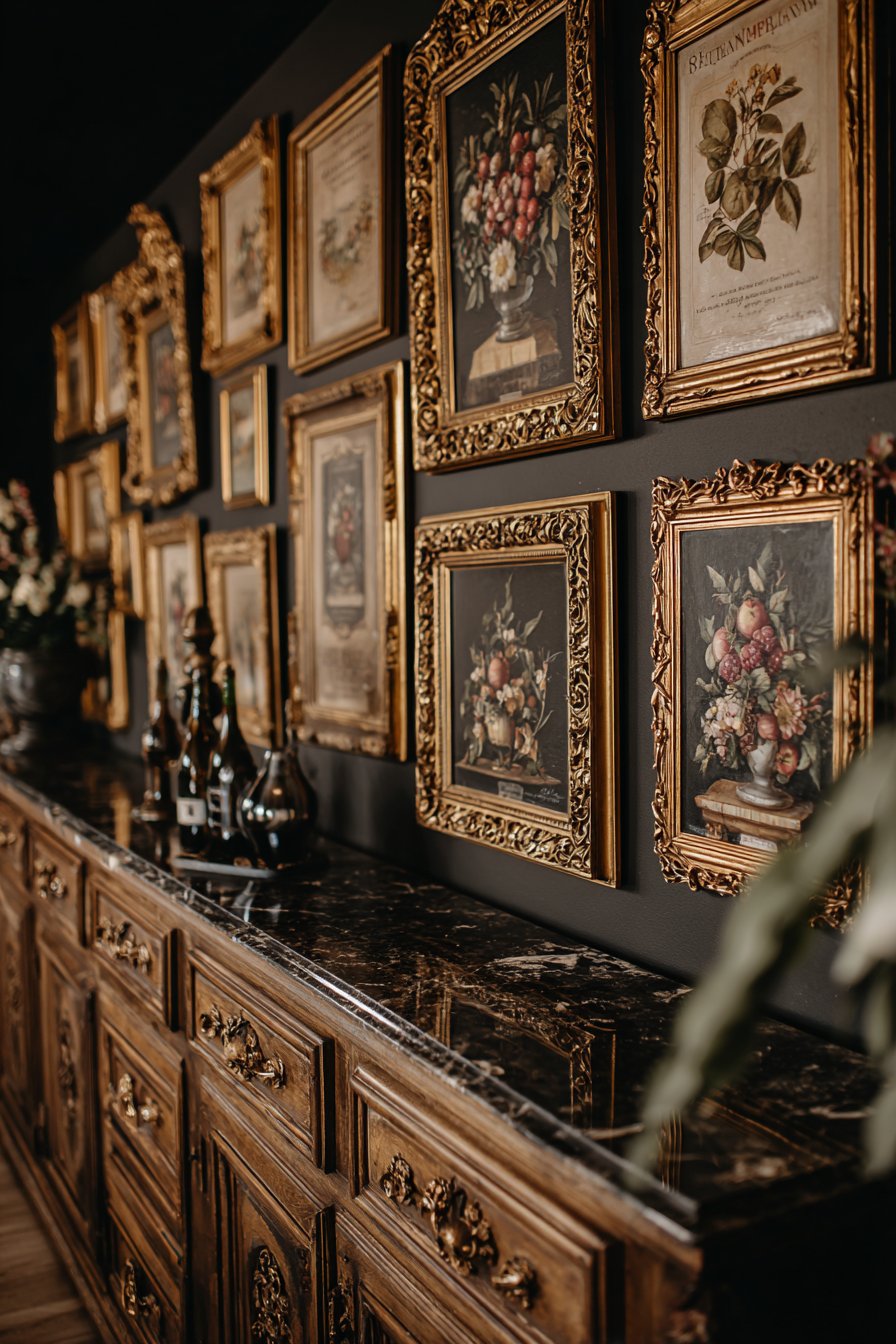 1. Asymmetrical Elegance with Ornate Gilded Frames