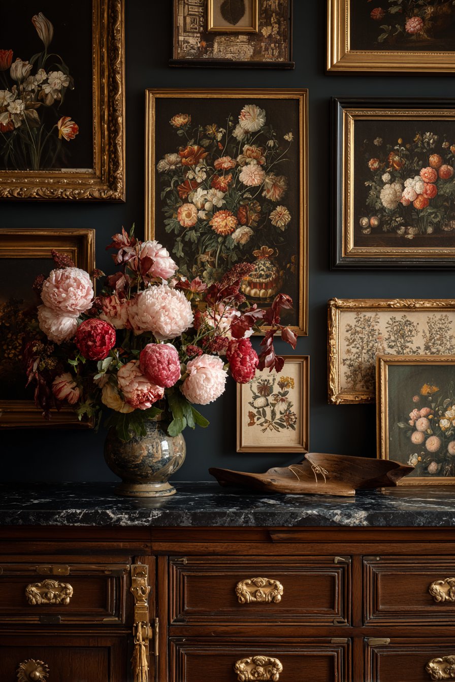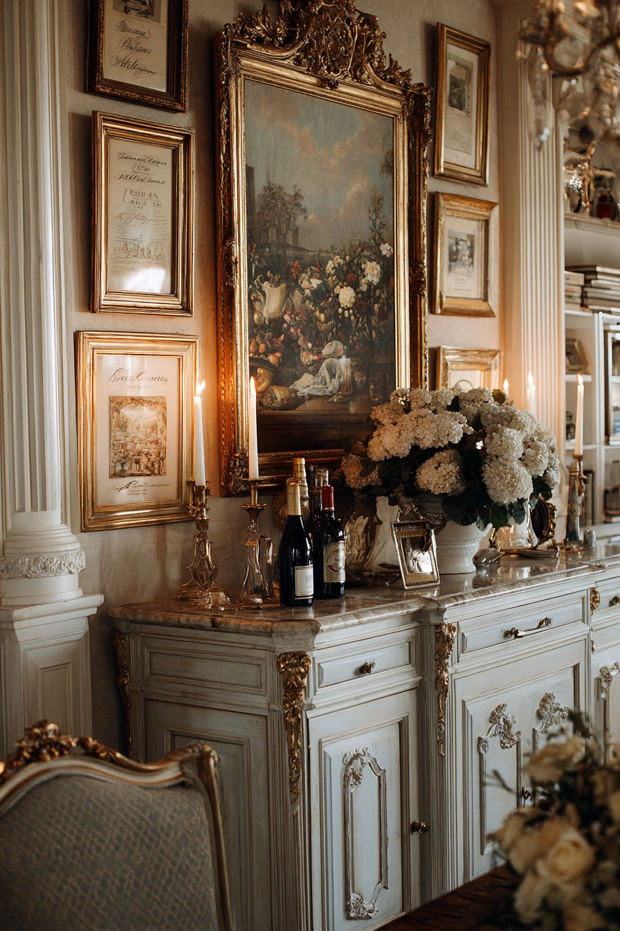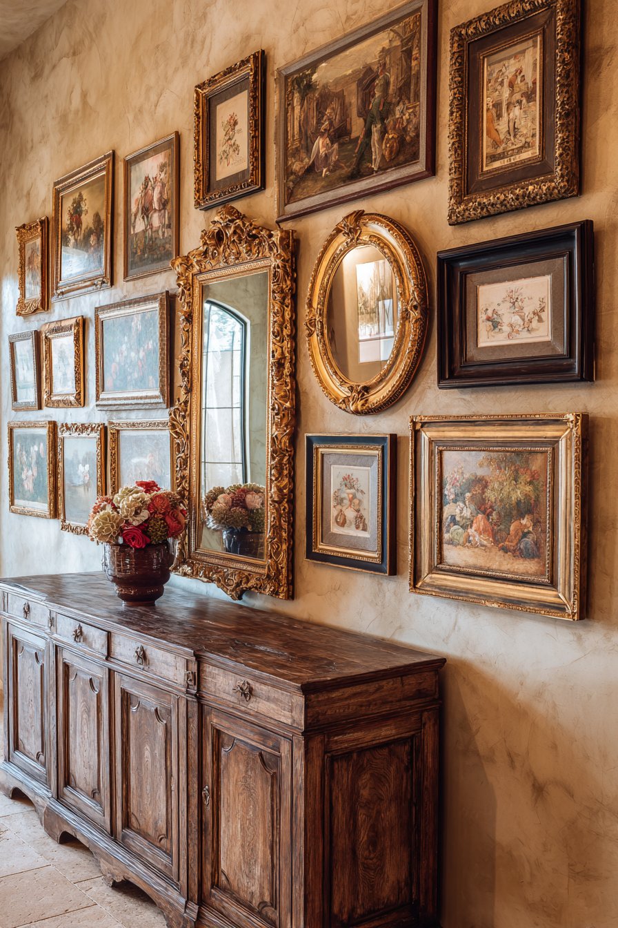 • Balance heavy ornate frames with simpler pieces to prevent visual overwhelm