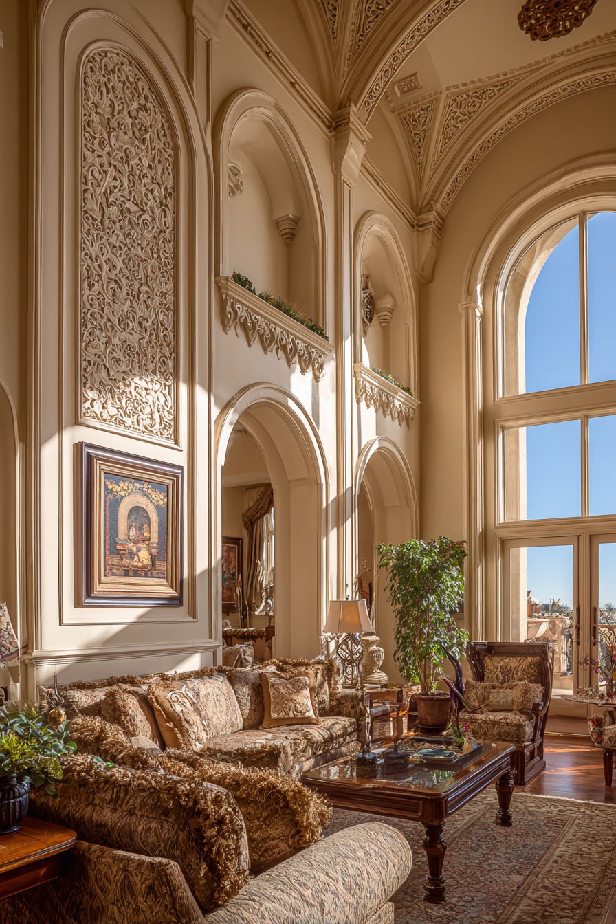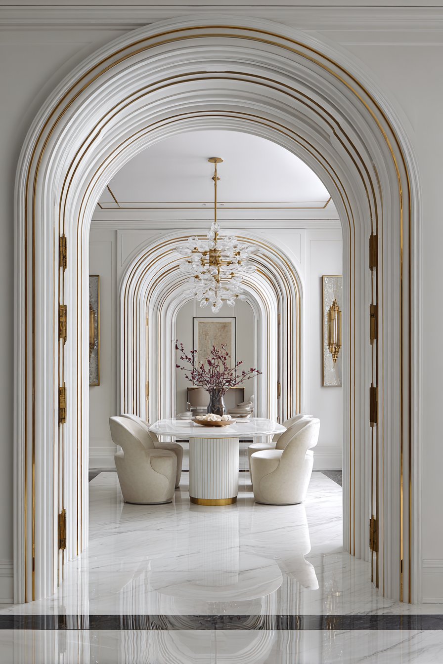 - Limit highly ornate arches to entry spaces or singular focal points to avoid visual overwhelm