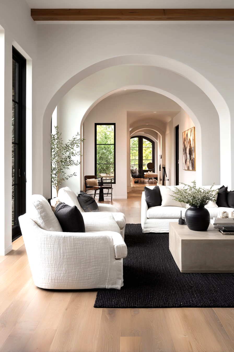 - Pair black arches only with very light surrounding walls (white or pale gray) for maximum contrast impact
