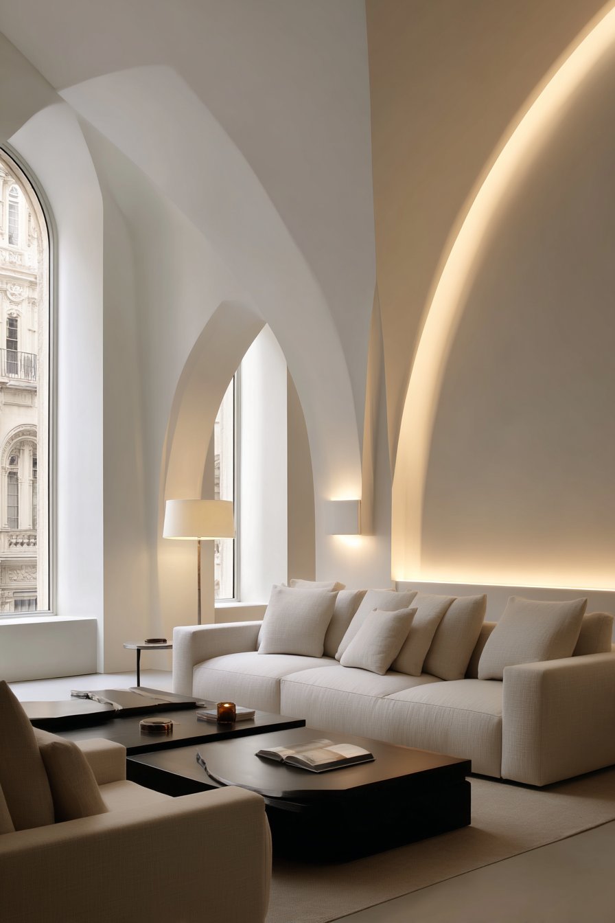- Ensure the arch has perfectly smooth plaster work without texture, as imperfections are more visible in minimalist designs