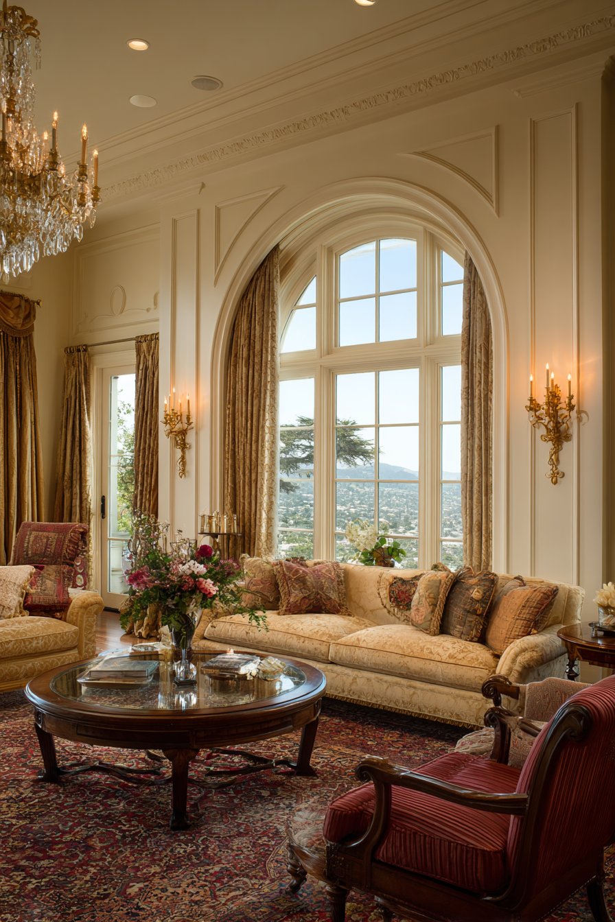 - Balance the dramatic arch with relatively simple furnishings to avoid visual competition