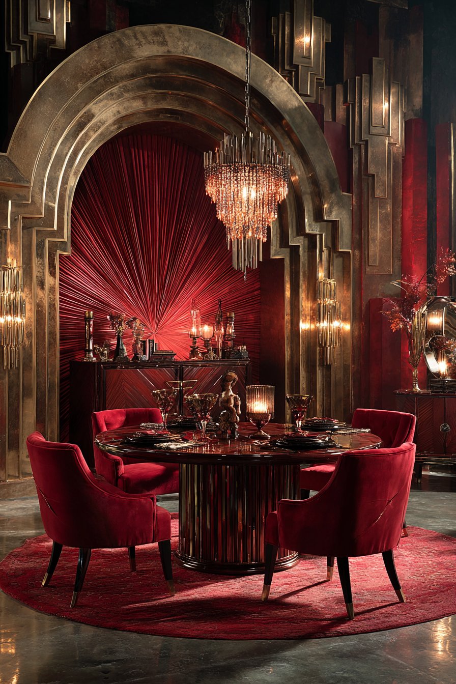 The arch connects living spaces with retro-modern sophistication that feels both nostalgic and current. Mid-century design’s clean lines and organic modernism have proven timeless, making this treatment equally appropriate for period enthusiasts and contemporary design lovers. Through the arch, you glimpse period furniture—perhaps a sculptural lounge chair, a kidney-shaped coffee table, and a credenza with tapered legs—all exemplifying mid-century modern’s characteristic forms. Geometric patterns in textiles and art prints reinforce the era’s aesthetic without appearing costume-like.