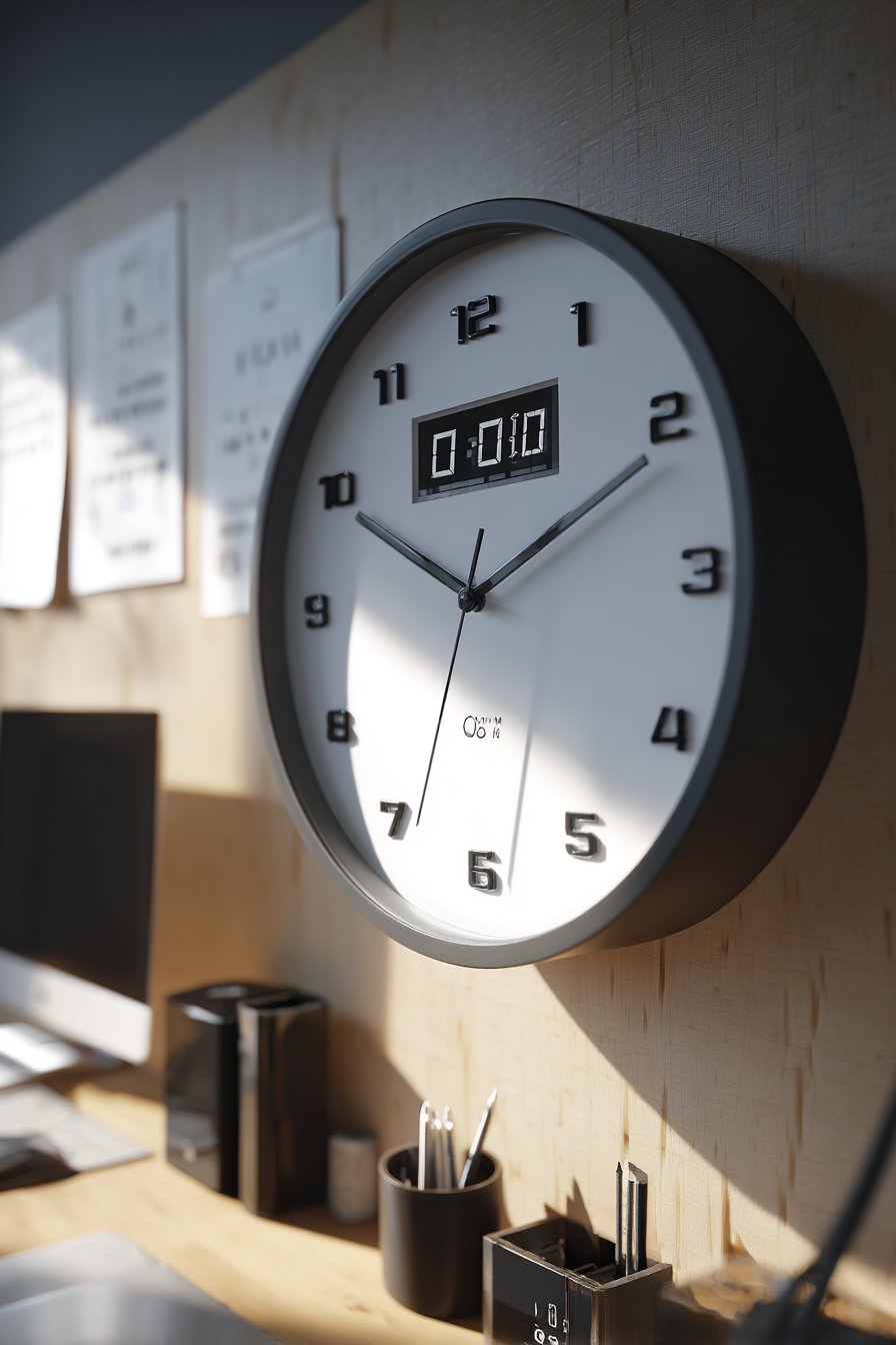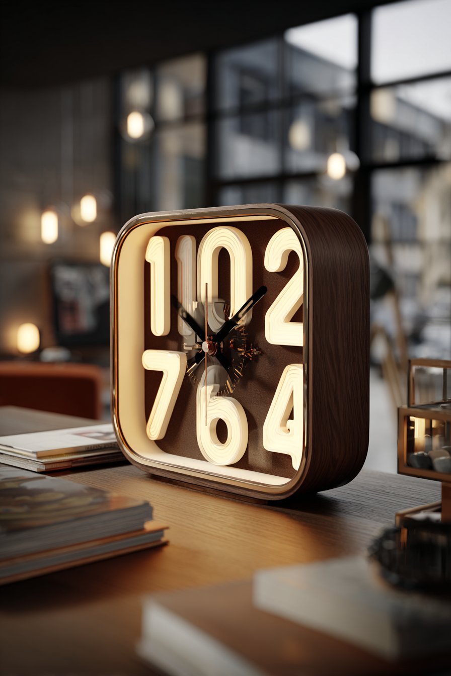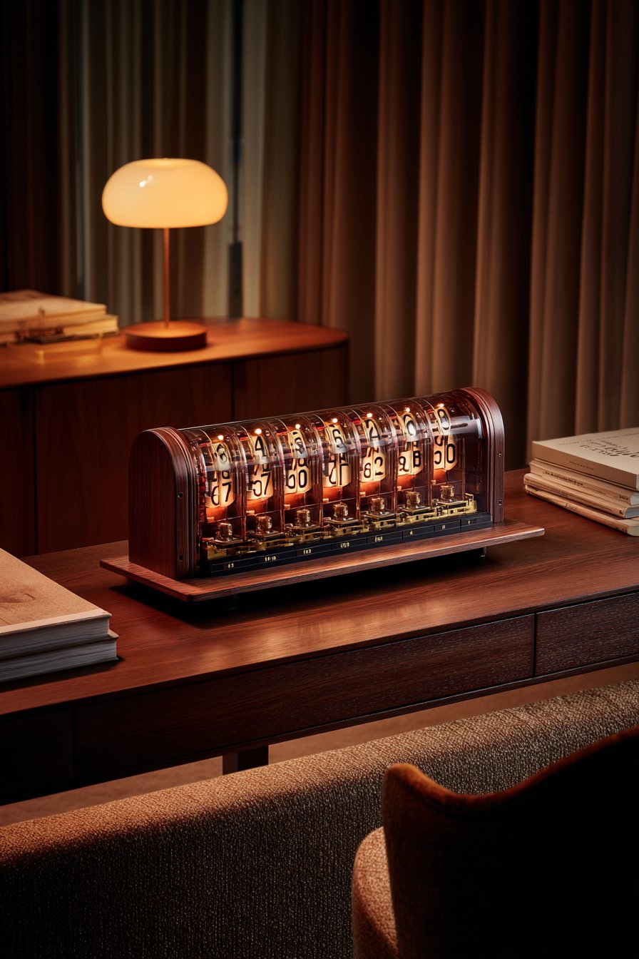 Displayed in a mid-century modern study with period furniture and warm task lighting, this flip clock reinforces the space’s vintage character. Warm lighting highlights the nostalgic design and functional movement, casting subtle shadows that emphasize the three-dimensional flip cards. The walnut wood finish connects to mid-century modern furniture traditions while brass accents add premium material touches. The flip mechanism creates gentle movement every minute, providing subtle animation that draws occasional glances without demanding constant attention.