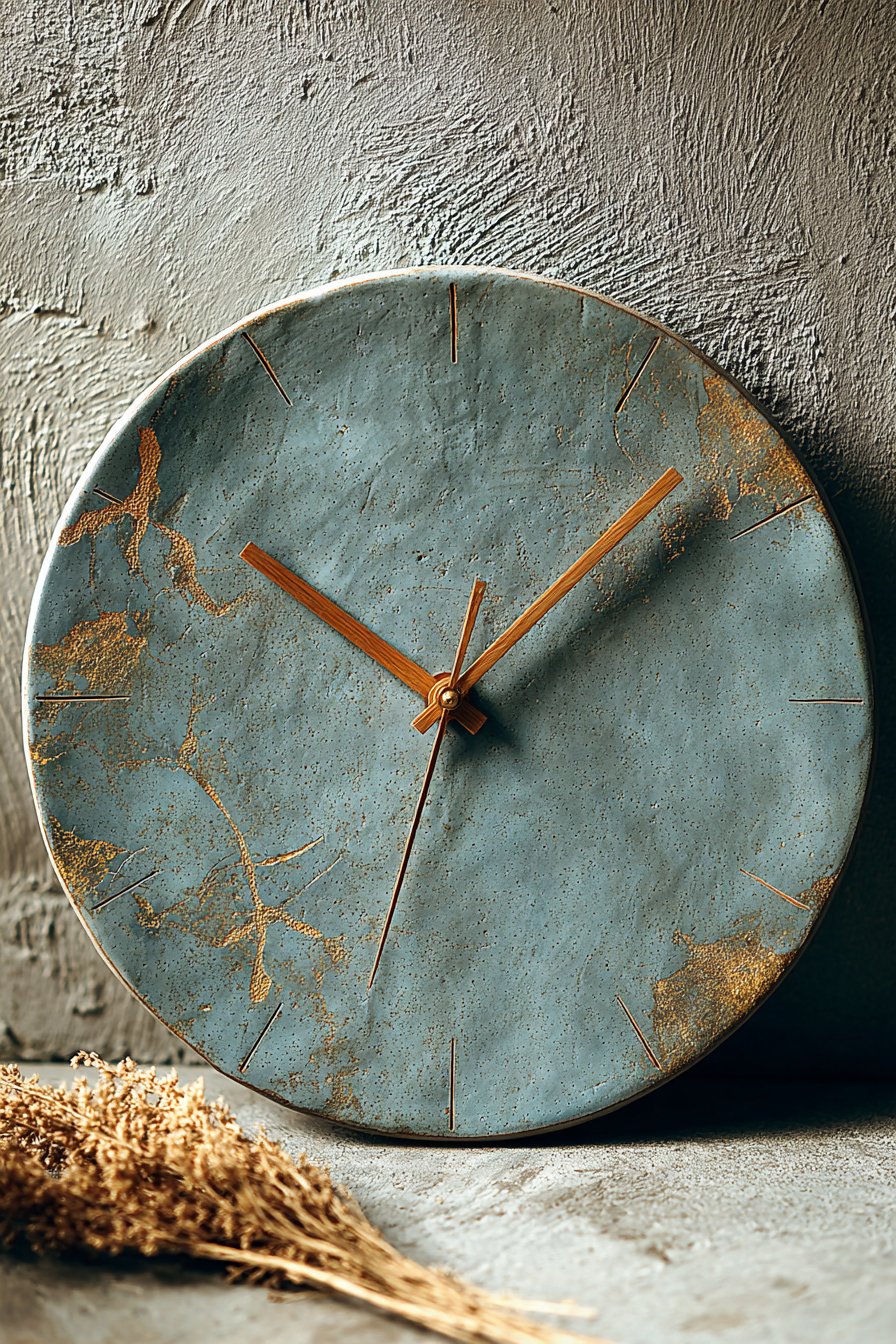 The contemporary craft movement celebrates handmade objects with visible maker’s marks, and this artisan-crafted ceramic wall clock exemplifies that appreciation for human touch. The 14-inch unique piece features stoneware face in soft gray-blue glaze with hand-painted gold accent marks—surface treatments that could only be created by skilled hands. Natural wood hands complement the ceramic face while subtle variations in the glaze finish ensure no two pieces are identical. This individuality represents craft’s essential appeal in our mass-produced world.