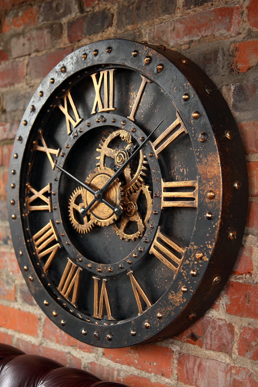 The scale of this clock makes it suitable for spaces with high ceilings and generous wall expanses where smaller timepieces would disappear. In converted industrial spaces, renovated warehouses, or modern lofts seeking to honor their architectural heritage, such a substantial clock serves as both functional necessity and artistic tribute. The aged bronze and black metal finishes work particularly well in spaces with exposed ductwork, concrete floors, or steel beam ceilings, creating a cohesive industrial vocabulary throughout the interior.