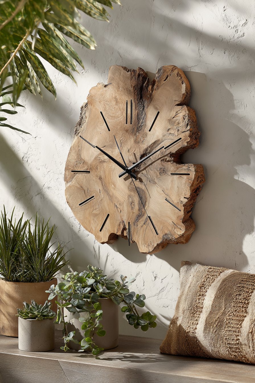 Organic design celebrates nature’s irregular beauty, perfectly demonstrated by this wall clock crafted from a live-edge wood slice with bark intact. The 18-inch rustic timepiece showcases natural wood grain patterns and the organic, irregular shape that no manufactured product could replicate. Simple black metal hands centered on the irregular wood face provide necessary contrast for time reading while maintaining design restraint. This nature-inspired approach brings the forest directly into your home, celebrating wood’s inherent beauty rather than forcing it into standardized forms.