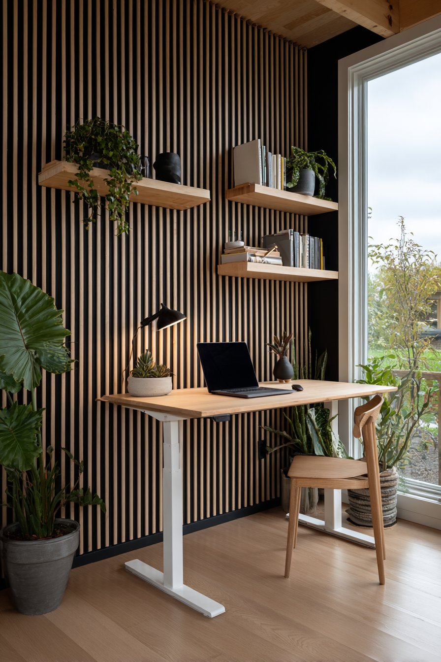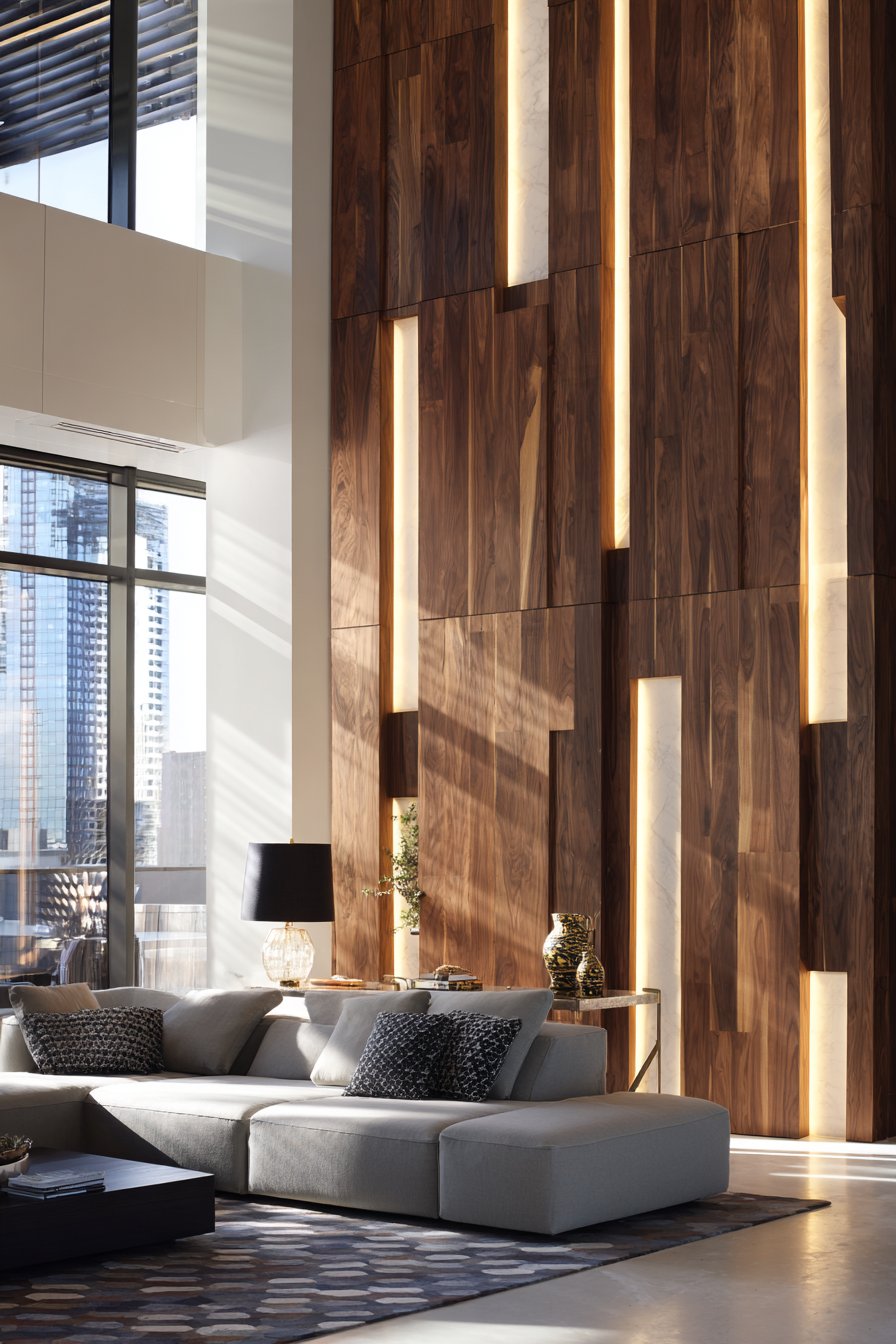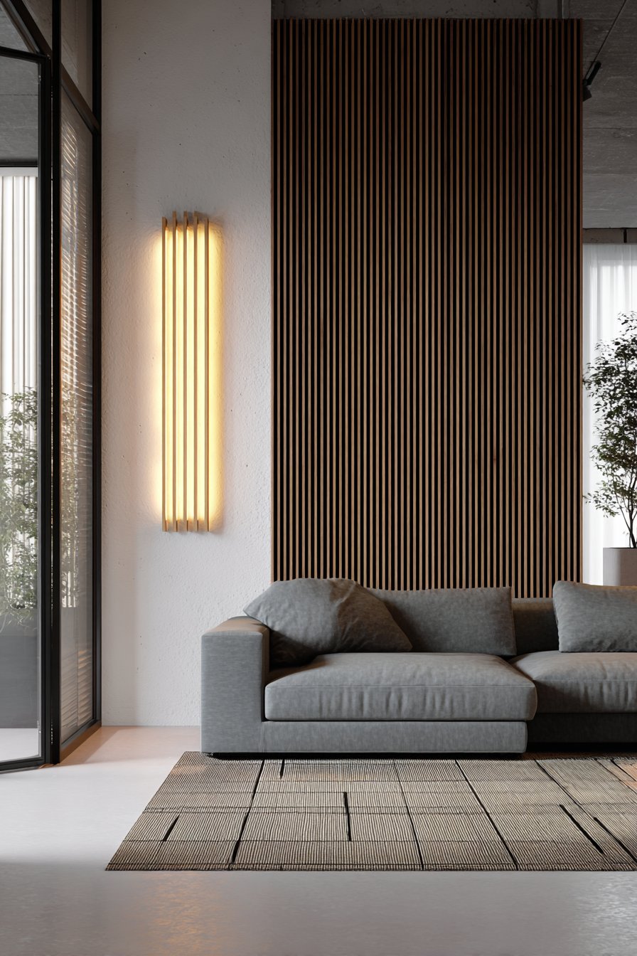 Key Design Tips: Choose wood species with prominent grain patterns like walnut or oak to maximize visual interest. Maintain consistent spacing between slats using a template for professional results. Install slats over a backer board to ensure stability and ease of LED integration. Position this treatment on walls opposite windows to capture natural light play. Consider the room’s ceiling height when determining slat length—floor-to-ceiling installation creates maximum impact. Use matte finish paint on background walls to prevent glare and keep focus on wood texture.