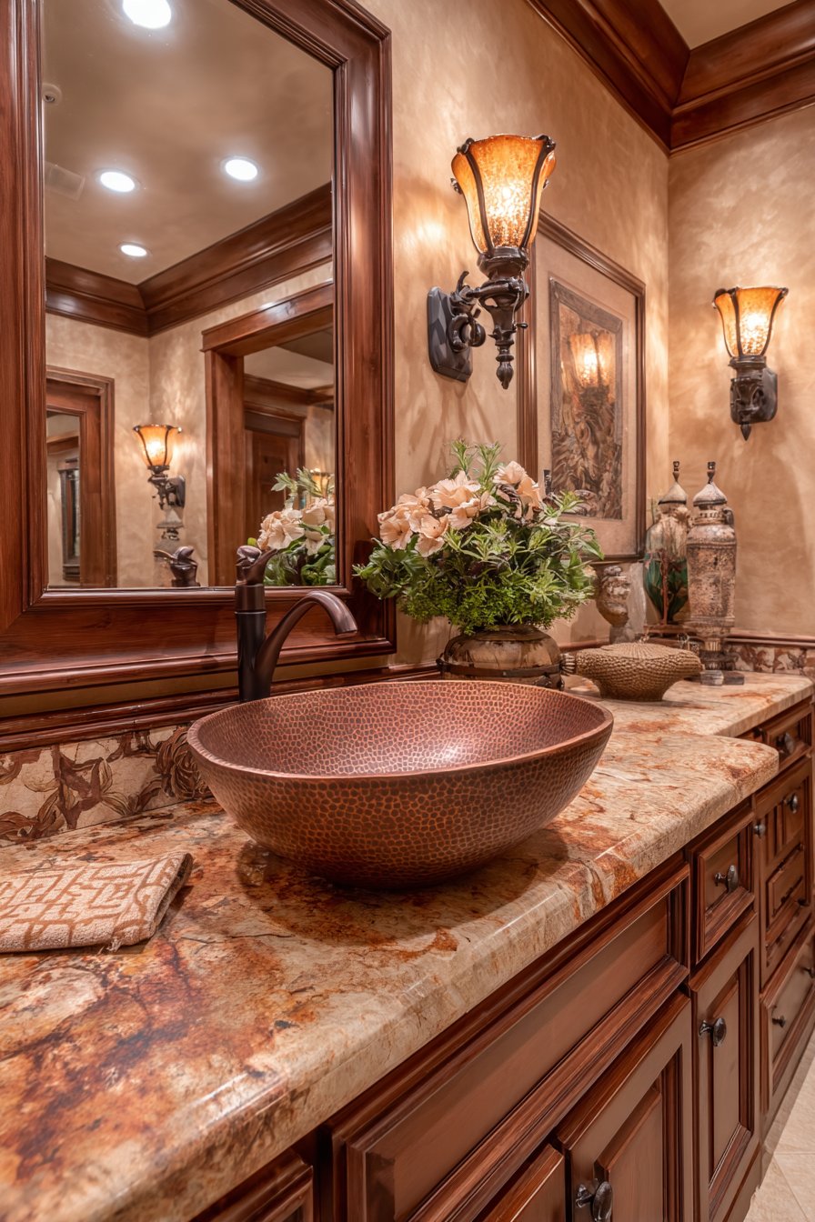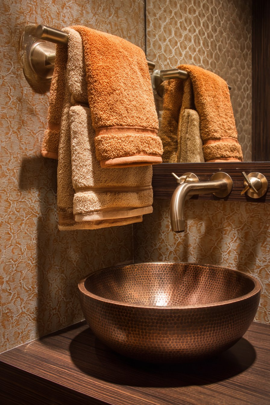 - Choose a vessel sink in copper that will develop a natural patina over time, adding character
