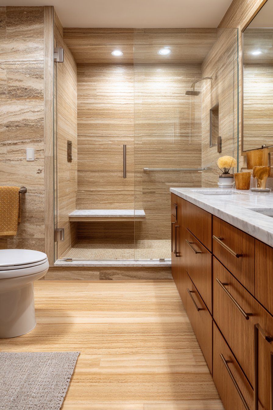 Remember that creating warmth doesn’t require expensive materials or extensive renovation. Simple changes like swapping out cool-toned elements for warm alternatives, adding wood accents, upgrading lighting to warmer color temperatures, incorporating warm textiles, and introducing plants can significantly shift the atmosphere. However, for those embarking on full renovations, the comprehensive approaches detailed in these designs offer roadmaps for creating truly exceptional bathrooms that combine beauty, comfort, and functionality.