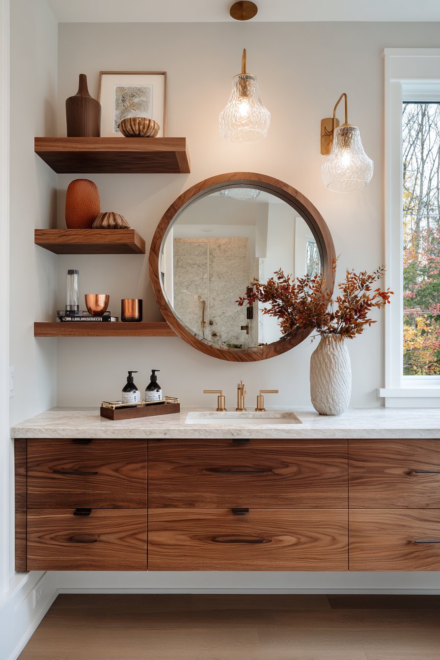 Small space solutions featured in several of these designs prove that warmth and luxury aren’t reserved for large bathrooms. Compact spaces can be just as warm and inviting through careful material selection, strategic color use, wall-mounted fixtures that maximize floor space, and clever storage solutions that prevent clutter. The principles of warm design scale beautifully to accommodate any bathroom size or configuration.