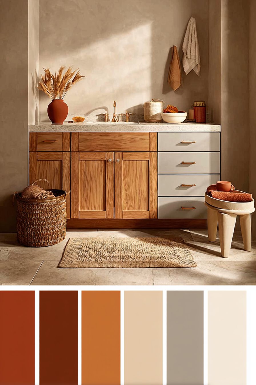Color theory and material science underpin all these successful designs, with warm undertones carefully considered in every paint color, tile selection, wood tone, and fabric choice. The sophisticated use of warm greiges, soft apricots, honey tones, terracotta accents, and golden metallics creates cohesive palettes that feel both curated and natural. Understanding how colors work together and how they’re affected by lighting ensures that the warmth is consistent and enveloping rather than patchy or accidental.