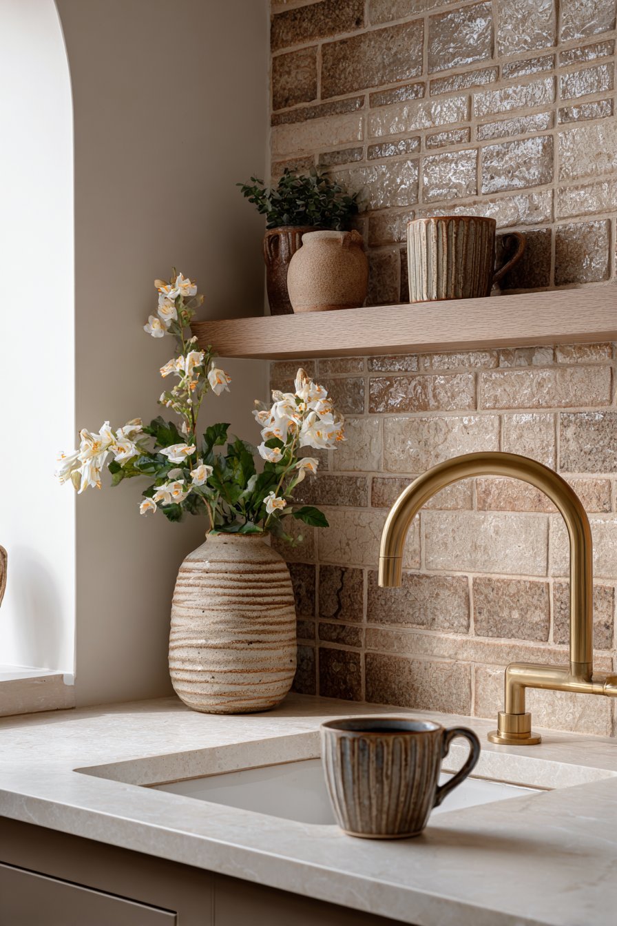 22. Artisanal Detail: Handmade Ceramic Backsplash