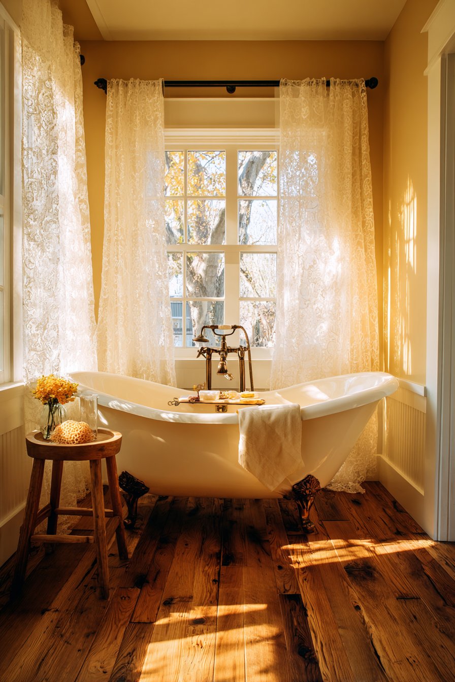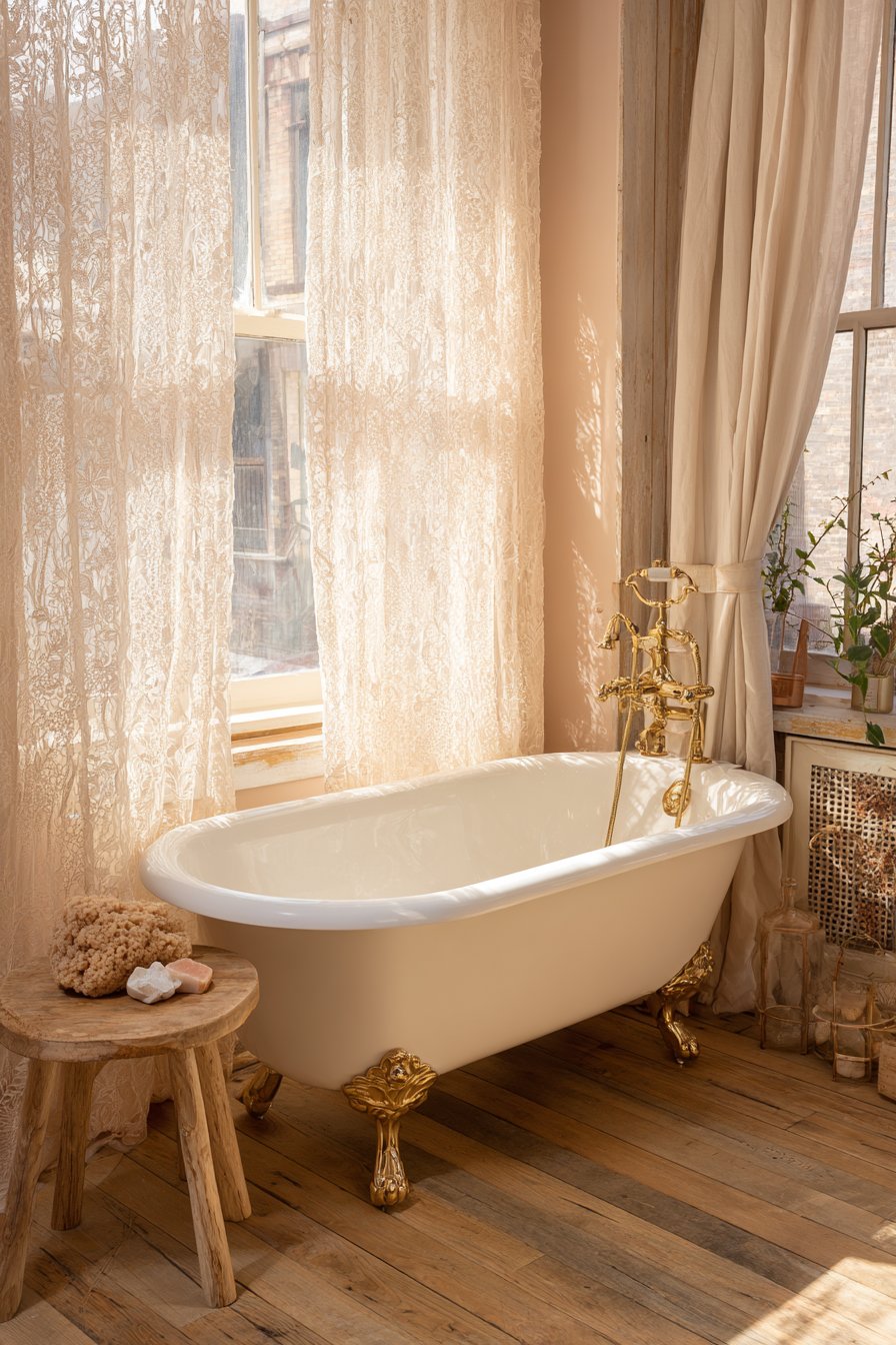 - Place a vintage rug or bath mat beside the tub for comfort and to protect flooring from standing water