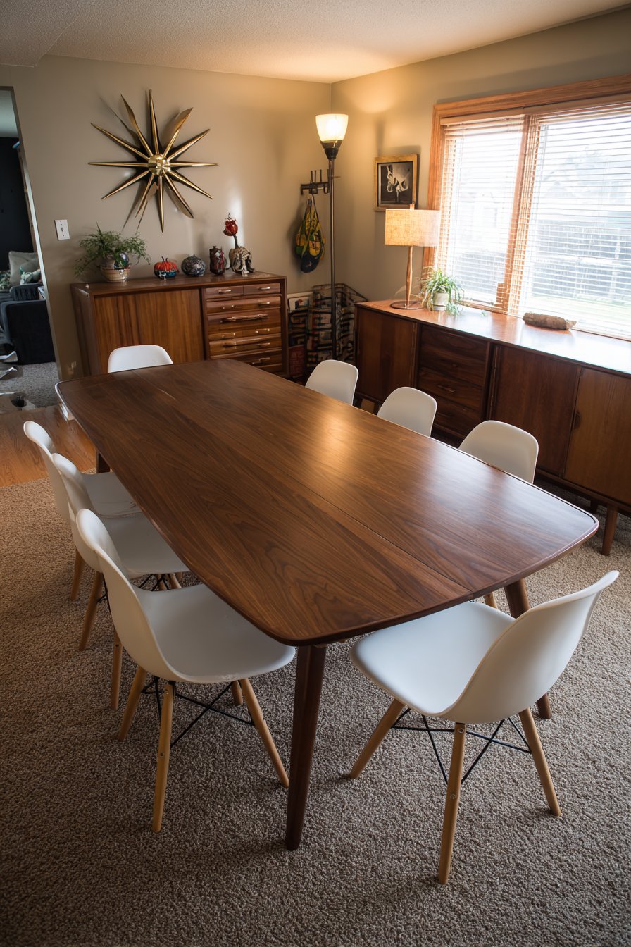 Key Design Tips: Source genuine vintage pieces or high-quality reproductions from makers who understand mid-century design principles. Choose walnut for authentic period appearance and lasting beauty. Apply Danish oil or similar penetrating finishes rather than surface-film finishes. Coordinate with period-appropriate seating like Eames, Saarinen, or Wegner designs. Include other mid-century elements like credenzas, lighting, and accessories to create cohesive aesthetic. Understand that authentic vintage pieces command premium prices but offer investment value. Maintain oiled finishes with periodic reapplication to preserve wood’s natural appearance and protection.