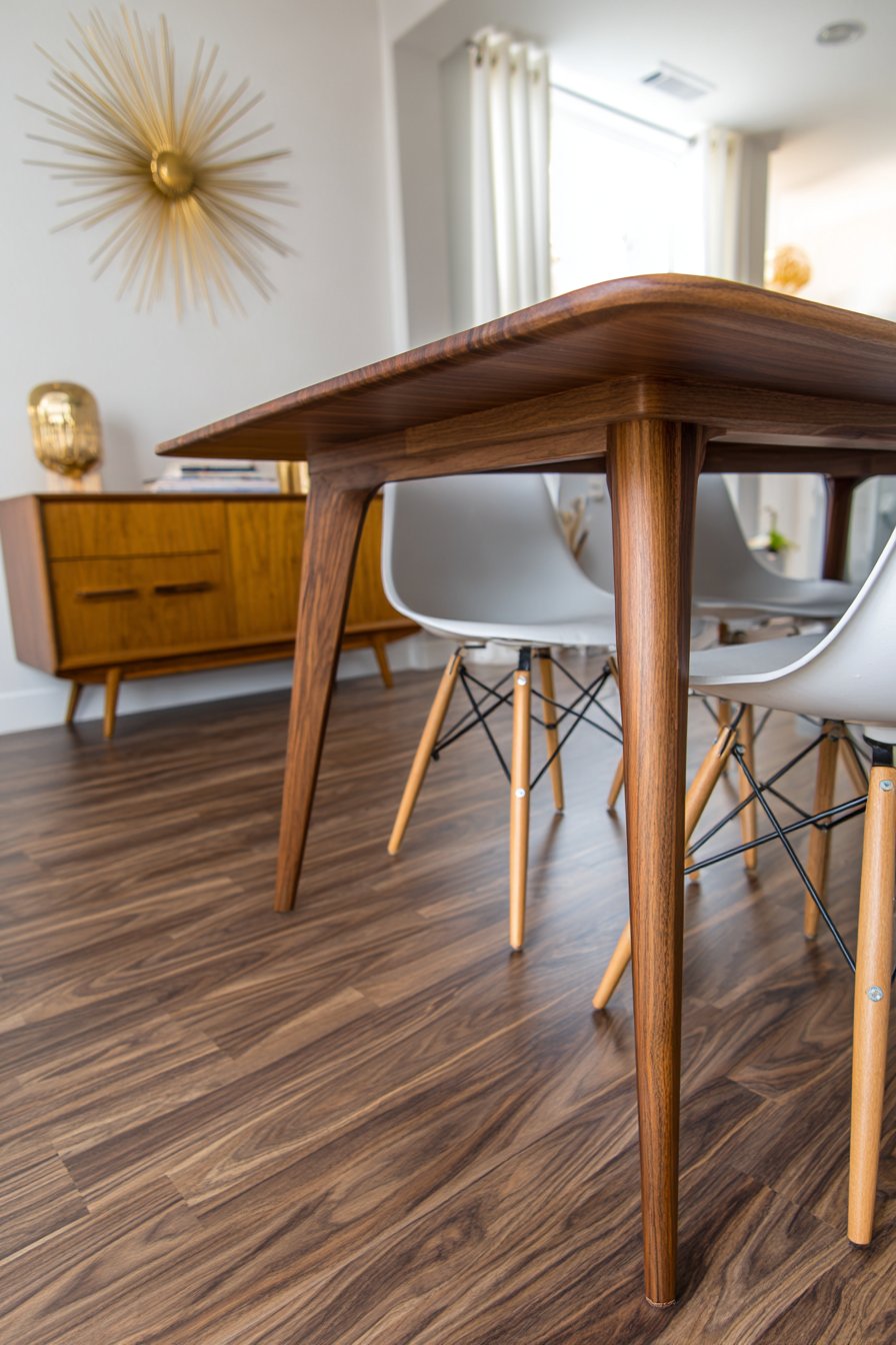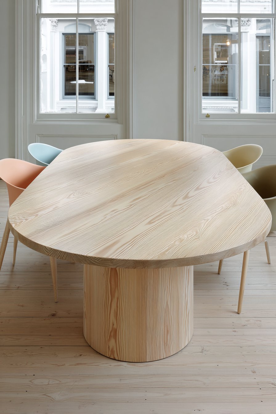 Key Design Tips: Select light-toned woods like ash, birch, or maple for authentic Scandinavian aesthetic. Choose natural oil finishes rather than heavy lacquers to preserve wood’s organic character. Maximize natural light through large windows and minimal window treatments. Keep color palettes neutral with subtle pastel accents rather than bold hues. Invest in iconic mid-century modern seating that complements rather than matches the table. Maintain clutter-free surfaces to honor minimalist principles. Use a single pedestal base for visual lightness and improved functionality.