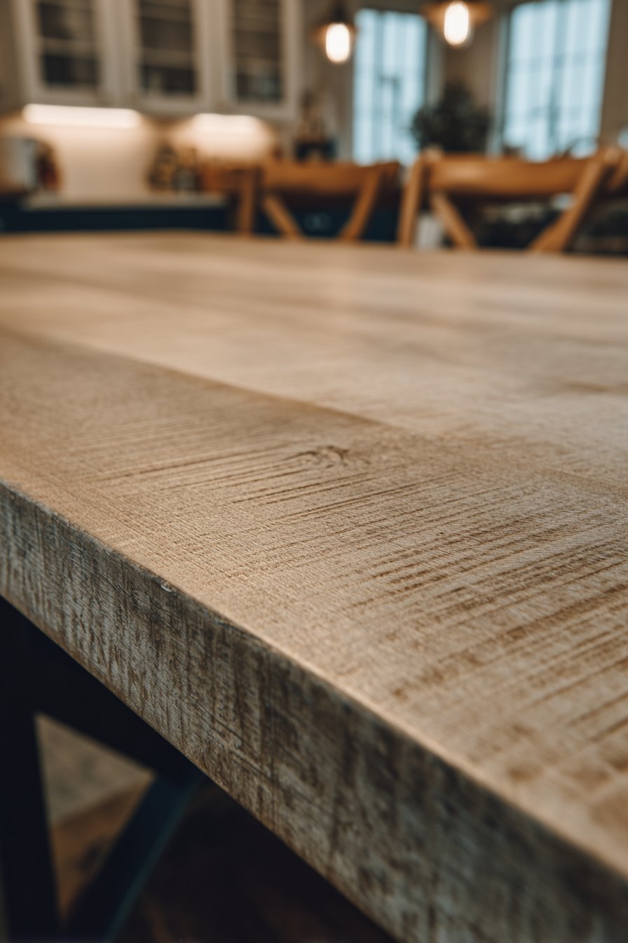 Key Design Tips: Verify reclamation source and ensure proper treatment for indoor furniture use. Embrace nail holes and weathering as authentic features rather than defects. Choose trestle base designs with adequate stability for the top’s dimensions and weight. Apply food-safe finishes that protect without obscuring patina. Keep surrounding elements simple to allow reclaimed wood to command attention. Understand that reclaimed lumber may have slight warping or irregularities from previous use. Clean gently with appropriate products that won’t damage aged patina. Appreciate that each piece is unique and variations should be expected and celebrated.