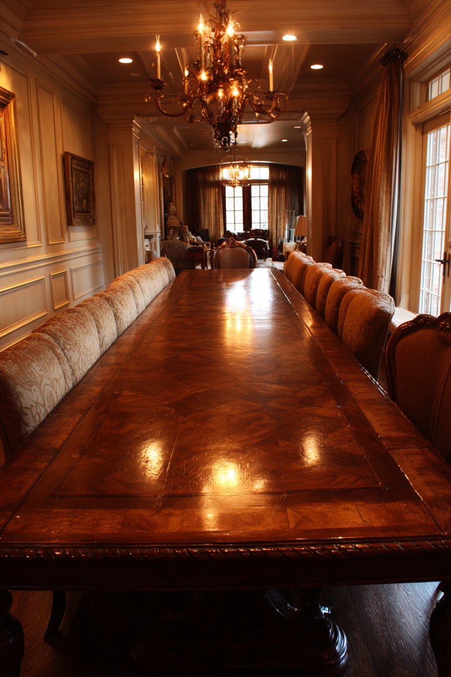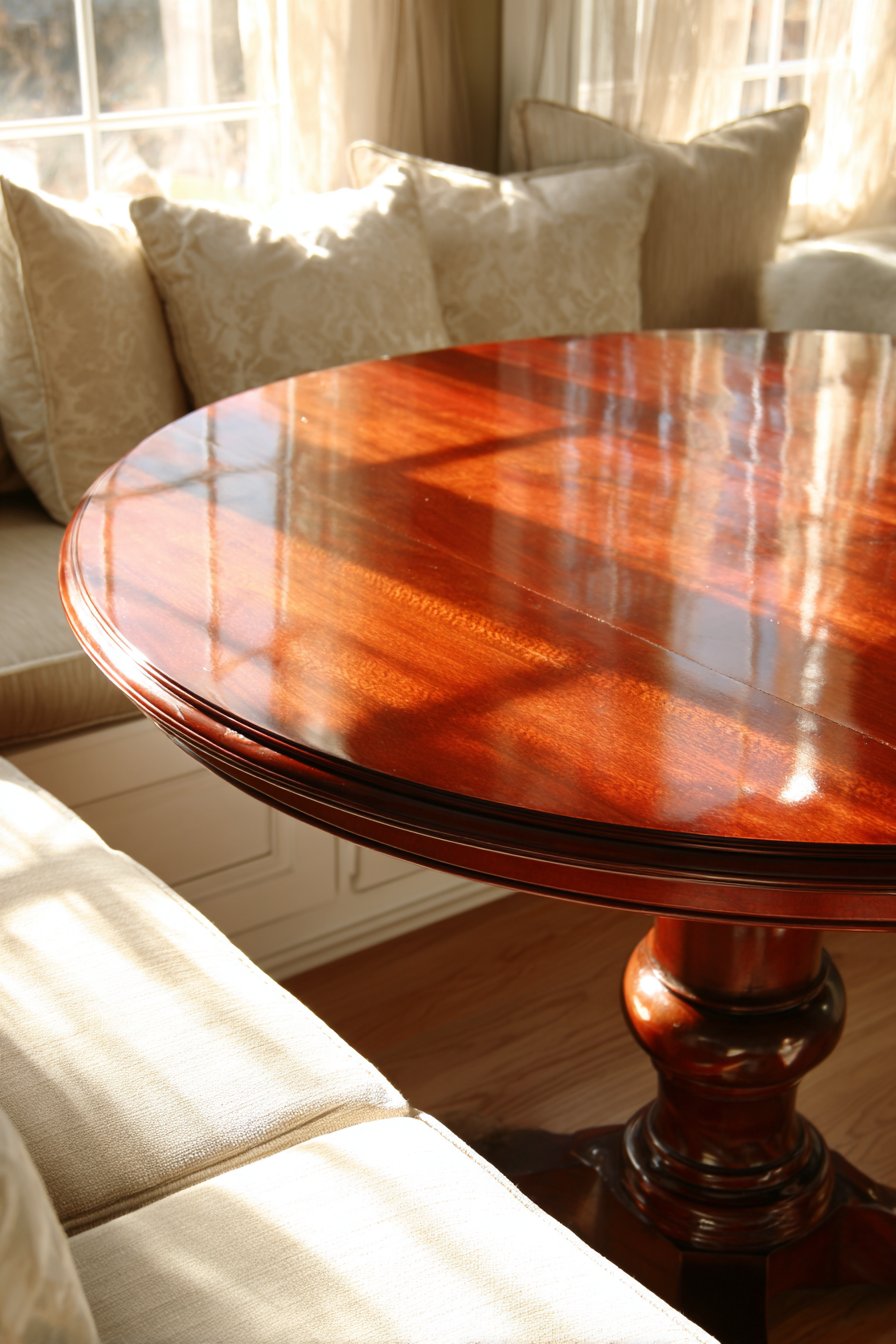 Key Design Tips: Invest in solid mahogany construction rather than veneer for longevity and refinishing capability. Choose hand-rubbed finishes applied by experienced craftspeople for optimal depth and character. Ensure extension mechanism operates smoothly and locks securely in both collapsed and extended positions. Select formal upholstered seating appropriate to the table’s traditional aesthetic. Budget for quality—traditional mahogany construction and hand-finishing command premium pricing. Maintain hand-rubbed finishes with appropriate products that enhance rather than damage the patina. Store extension leaves properly when not in use to prevent warping. Consider professional refinishing every few decades to restore finish while preserving patina.