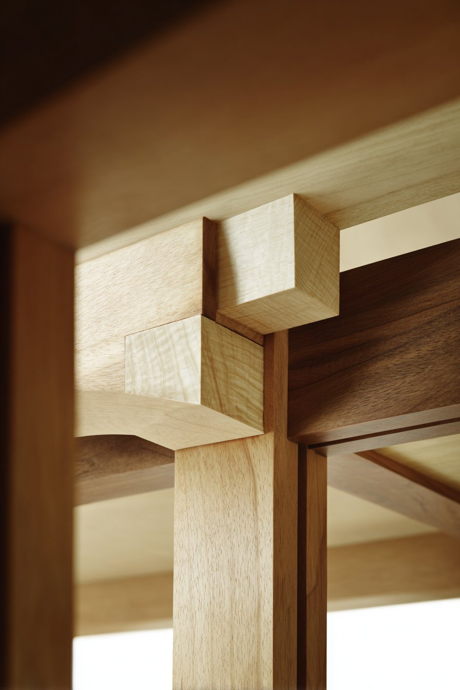 Key Design Tips: Work with skilled woodworkers who can execute precise butterfly joint cutting and fitting. Choose strongly contrasting wood species to maximize visual impact of butterflies. Position joints strategically across natural cracks or create intentional gaps for decorative application. Ensure proper wood stabilization before adding butterflies to prevent further movement. Apply consistent finish across both wood species despite color differences. Celebrate visible joinery rather than hiding construction methods. Protect the surface to preserve both structural and aesthetic integrity of the joints. Consider the table as investment in craftsmanship that appreciates value over time.