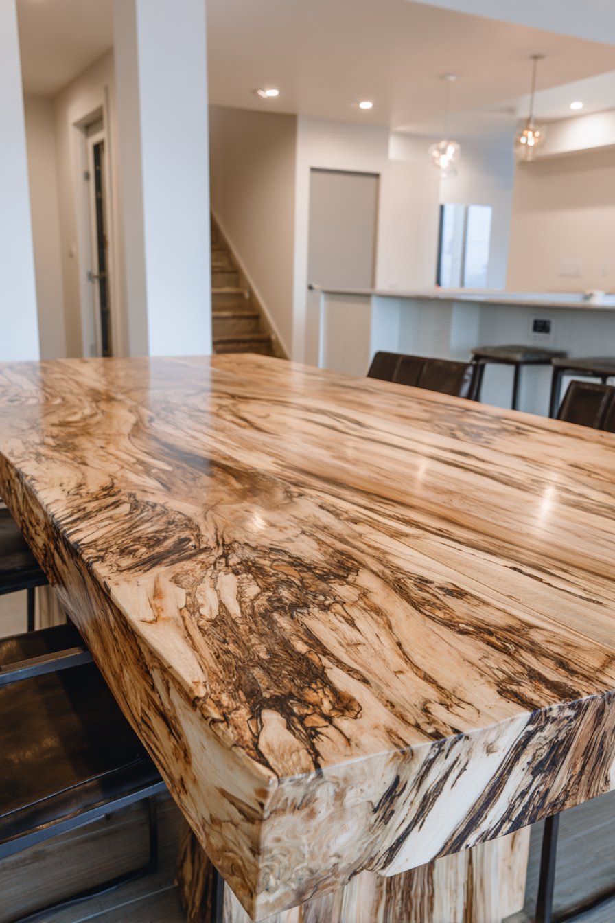 Key Design Tips: Source spalted wood from knowledgeable suppliers who understand proper stabilization requirements. Ensure adequate wood stabilization with epoxy or other hardeners to prevent continued decay. Work with craftspeople experienced in spalted wood’s unique challenges and characteristics. Apply clear finishes that showcase patterns without yellowing or obscuring detail. Design simple, minimal surrounding elements to allow spalted wood to remain focal point. Plan museum-quality lighting to showcase the patterns as artwork deserves. Protect the surface carefully—spalted wood can be more fragile than sound lumber. Budget accordingly—premium spalted wood and specialized processing command significant pricing. Appreciate that each spalted piece is utterly unique and patterns cannot be specified or controlled.