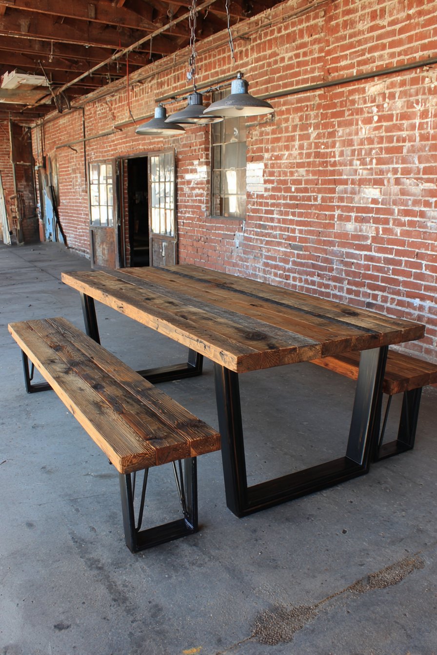Key Design Tips: Source genuinely reclaimed wood rather than artificially distressed new lumber for authentic character. Choose hairpin legs in matte black powder coat for durability and true industrial aesthetic. Embrace natural imperfections in the wood as design features rather than flaws. Coordinate with other industrial elements like metal lighting and exposed building materials. Apply protective finishes that preserve texture while providing necessary durability for dining surfaces. Consider the weight distribution and ensure metal legs are properly rated for the wood top’s substantial mass.