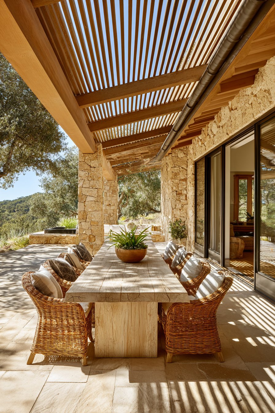 Key Design Tips: Invest in genuine teak from sustainable sources rather than inferior substitutes that won’t weather well. Allow the natural weathering process rather than fighting it with constant refinishing. Provide overhead coverage to protect diners from direct sun while allowing air circulation around the table. Choose complementary weather-resistant materials for seating that share teak’s durability. Consider the table’s weight when planning placement—teak is dense and heavy. Clean periodically with mild soap and water but avoid harsh chemicals that can interfere with natural weathering. Accept that weathered teak will develop surface variations and slight checking as part of its natural aging character.